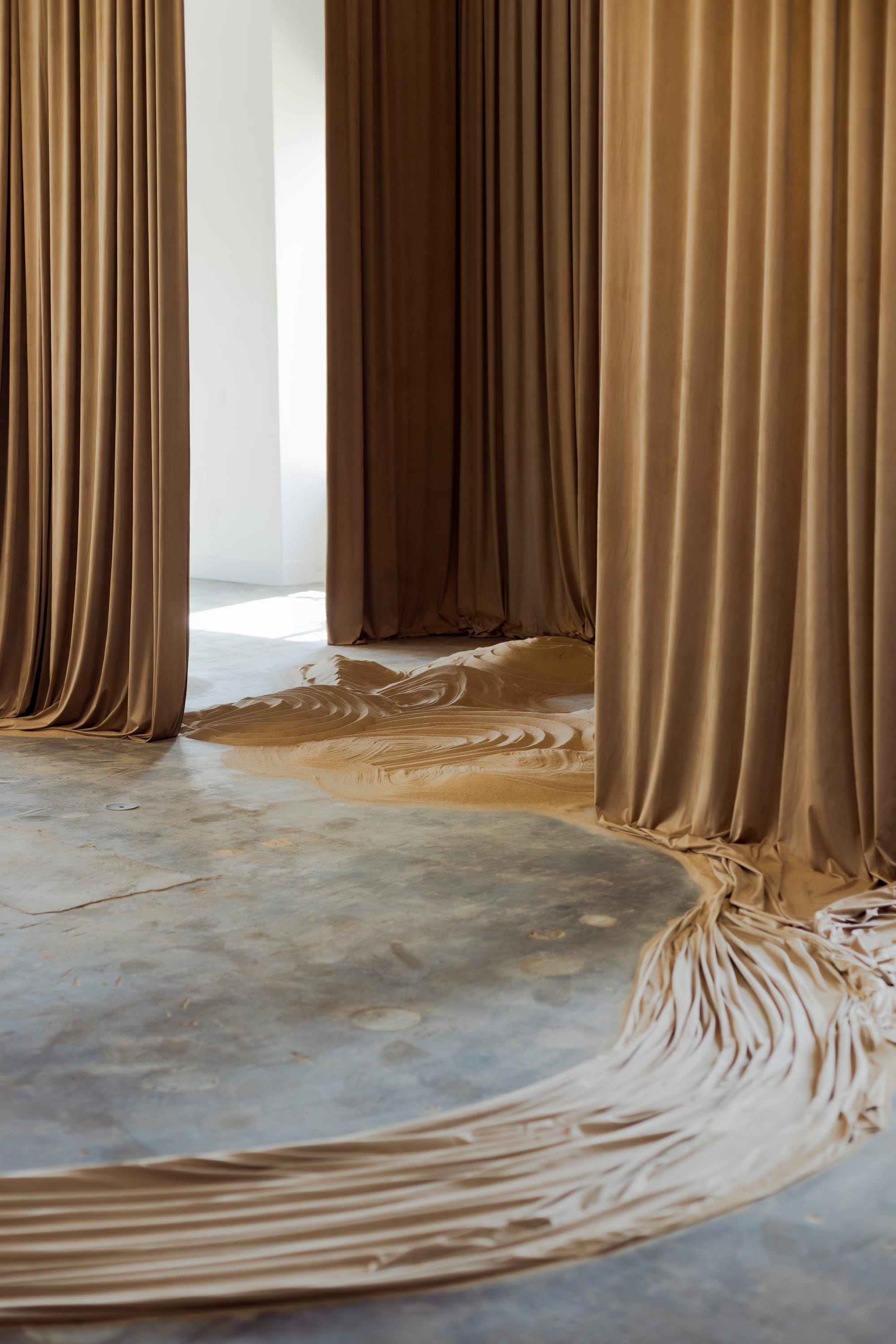 LEFT: Sediment as Reliable Narrative: Shroud Sand, fabric, sound, by Ashanti Chaplin