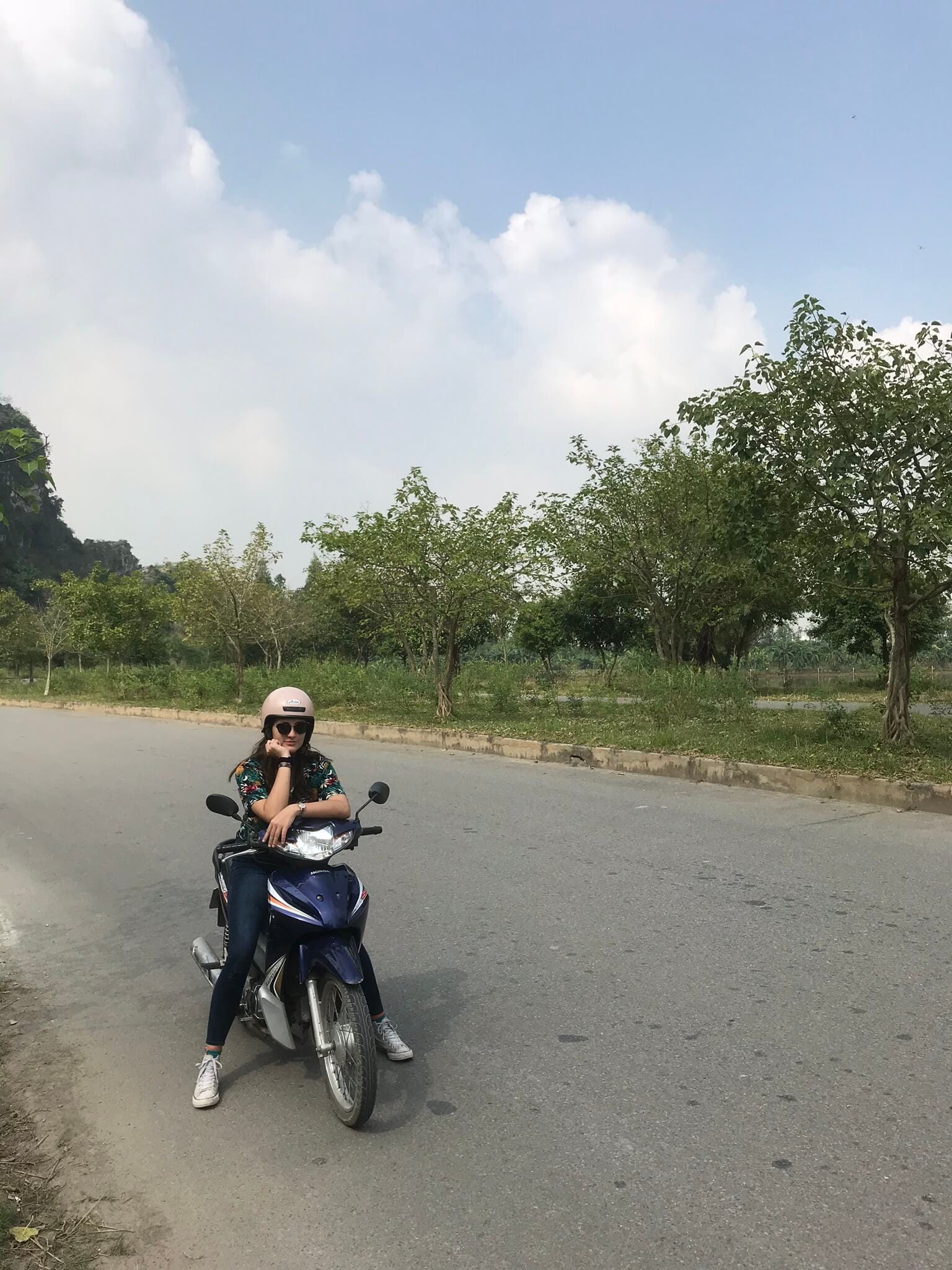 “It was about 110 degrees that day,” she says. “The hotel had no glass in the windows, and I was going to be there for six days. I found an expat group on Facebook, and had a guy bring me a small motorcycle. He asked if I knew how to ride it.”