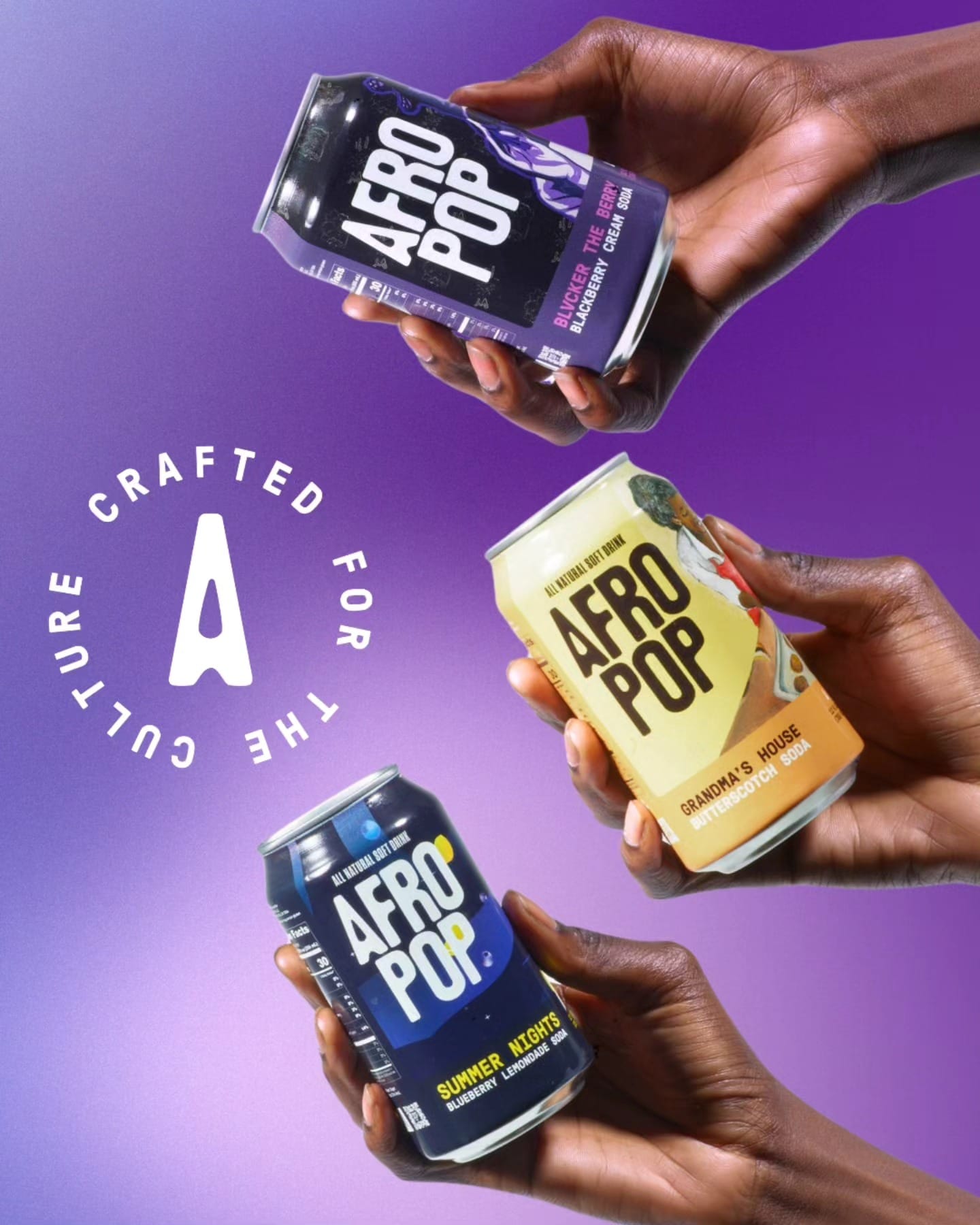Afro Pop’s current product lineup consists of three drinks: Summer Nights (a blueberry lemonade flavor), Grandma’s House (butterscotch) and Blvcker The Berry (blackberry cream soda) are sold in vibrant 12-ounce cans whose visuals were designed by local artists.