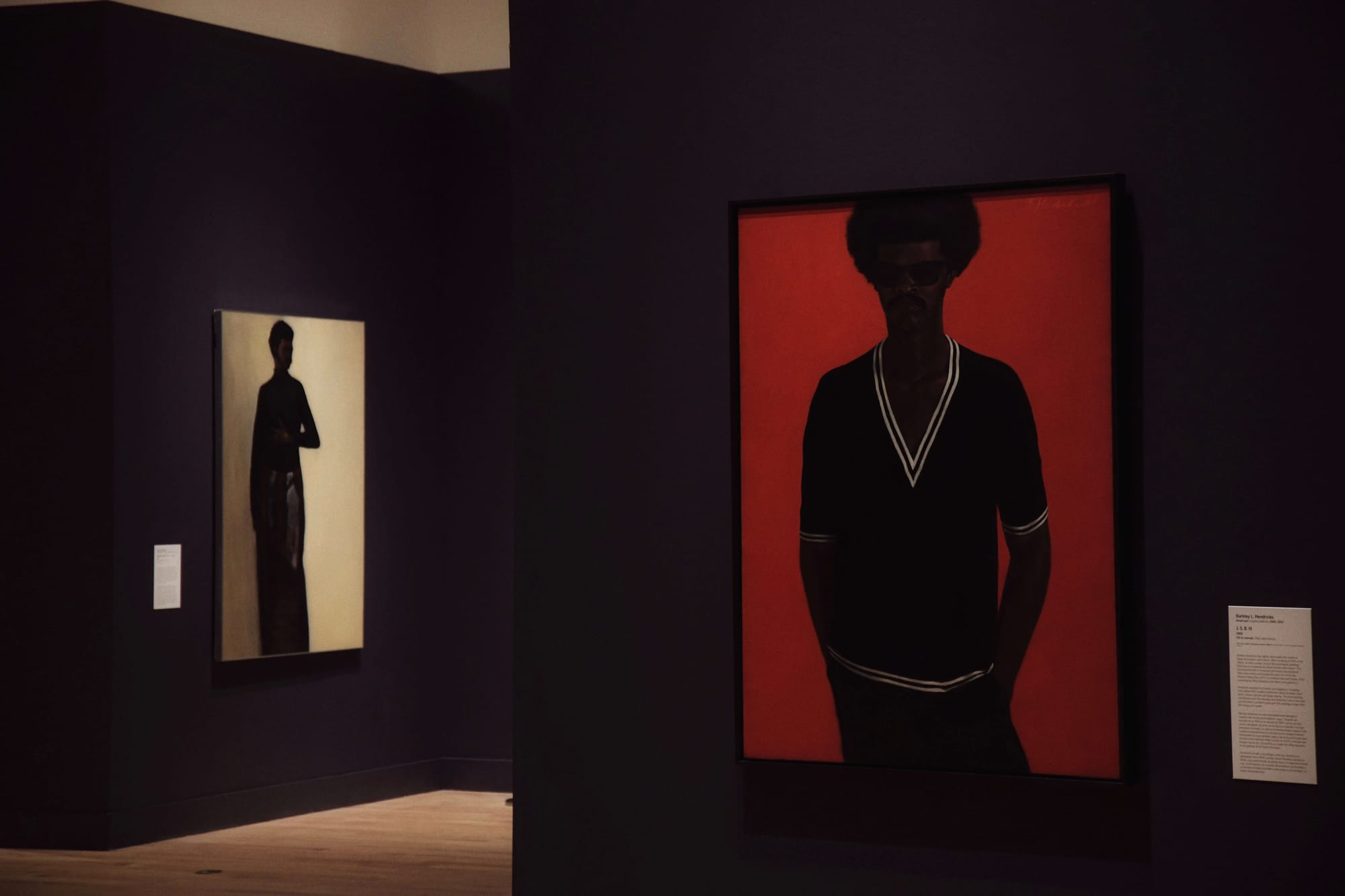 In a complementary effort, throughout the exhibition, artwork didactics cite works on display from Philbrook’s collection that help tell a fuller story of American identity. The didactic for Hendricks’ “J.S.B. III” includes mention of Kehinde Wiley, whose work is on view in the main level gallery at the Philbrook, building on the legacy of Black masculinity and monumental portraiture. It’s a fitting link, as Wiley served as the artist chosen by Barack Obama, our nation’s first Black president, to paint his official portrait.