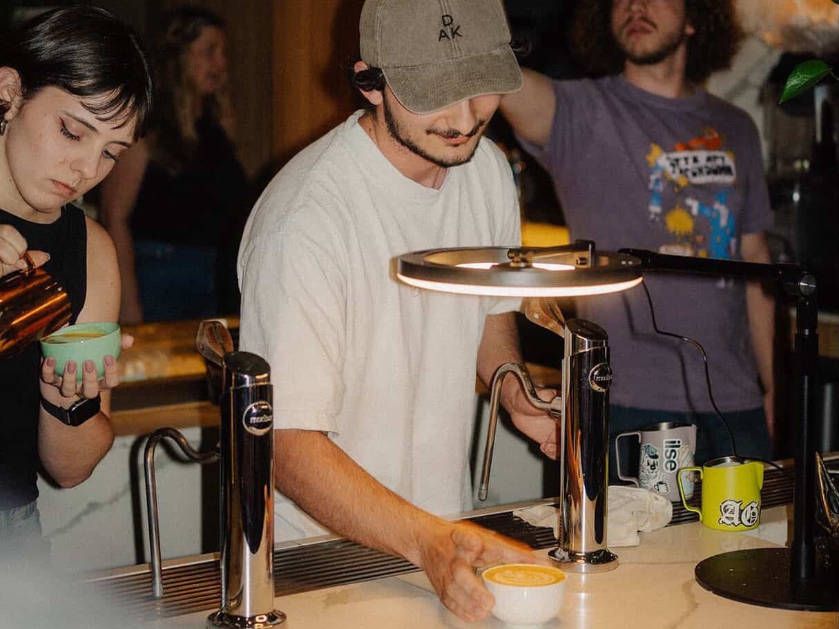 “I've only been doing this for two years. And like, if myself from two years ago, saw me pour that,” he says, gesturing to one of his signature latte art rosettas he poured during the interview, “I would freak out.”