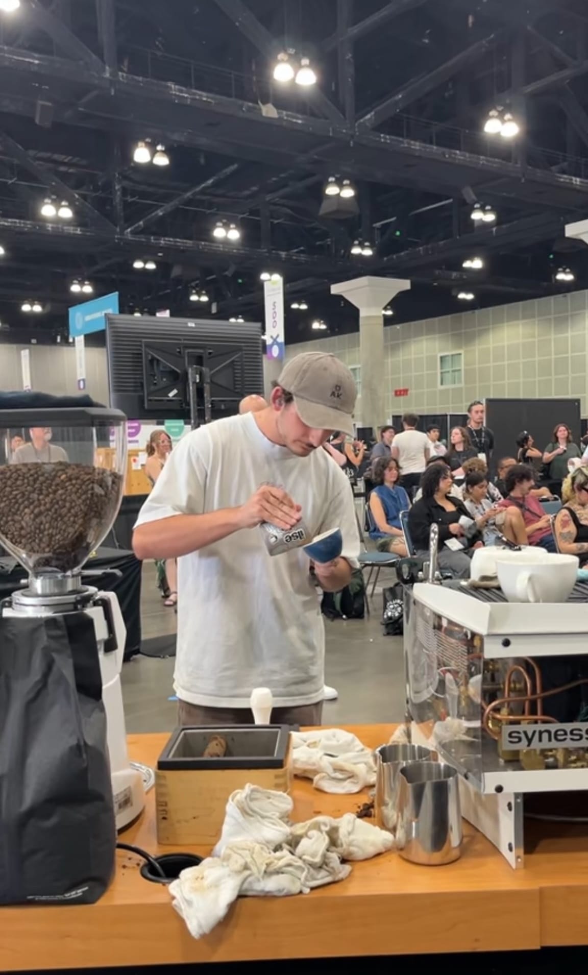 When Stanley arrived in Los Angeles the week of the competition, he received his sudden death matchup. Due to the seeded bracket, which is based on experience, he faced Andy Liang, who won Worlds in New York, L.A., and placed second in Portland just this year. Although his Worlds dreams ended early, he participated and reached round two in theEspresso State of Mind (ESOM) throwdown, held at CoffeeFest during the Expo.