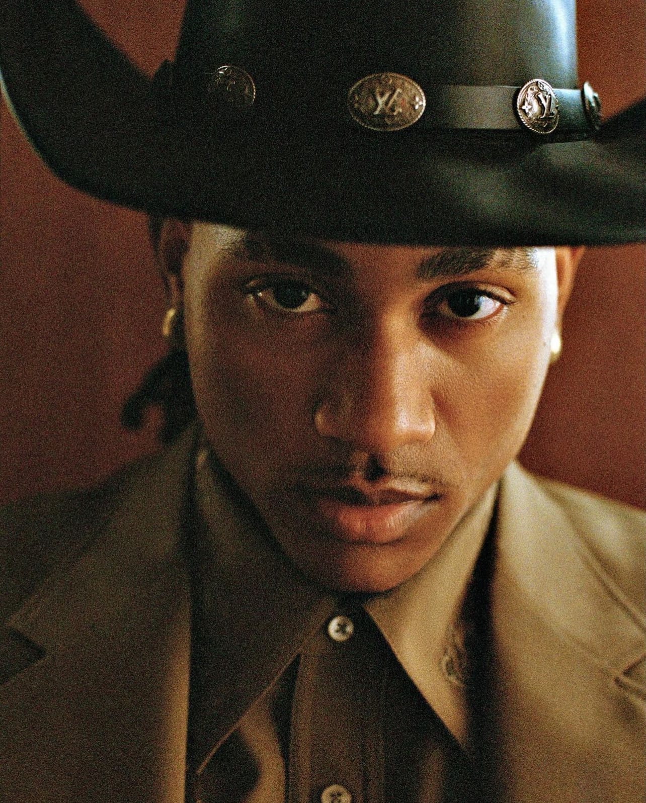 LEFT: Model Taylor Williams poses for Wonderland Magazine, wearing Louis Vuitton's Fall/Winter 2024 collection. CENTER: Williams walks the OKC streets, photo by Kaelon Walker. RIGHT: Williams competes in a local rodeo, showcasing his Oklahoma roots, photo courtesy of It's The Sweet Life