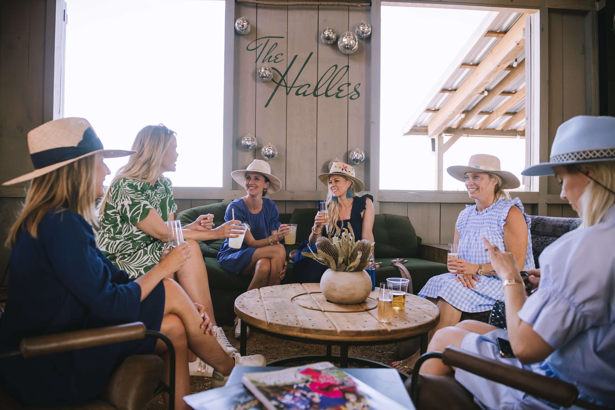 Wohali owner Cealy Mills, adorns one of her custom hats at The Halles / Friends gather at The Halles