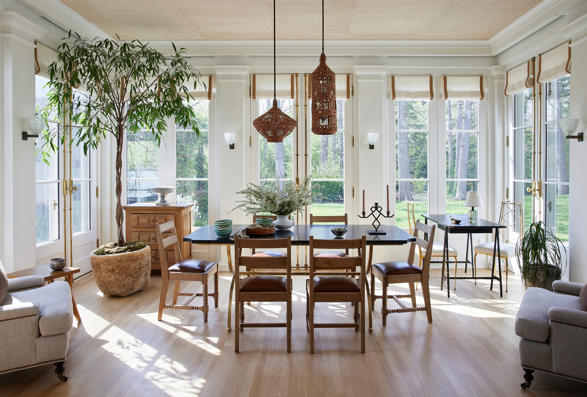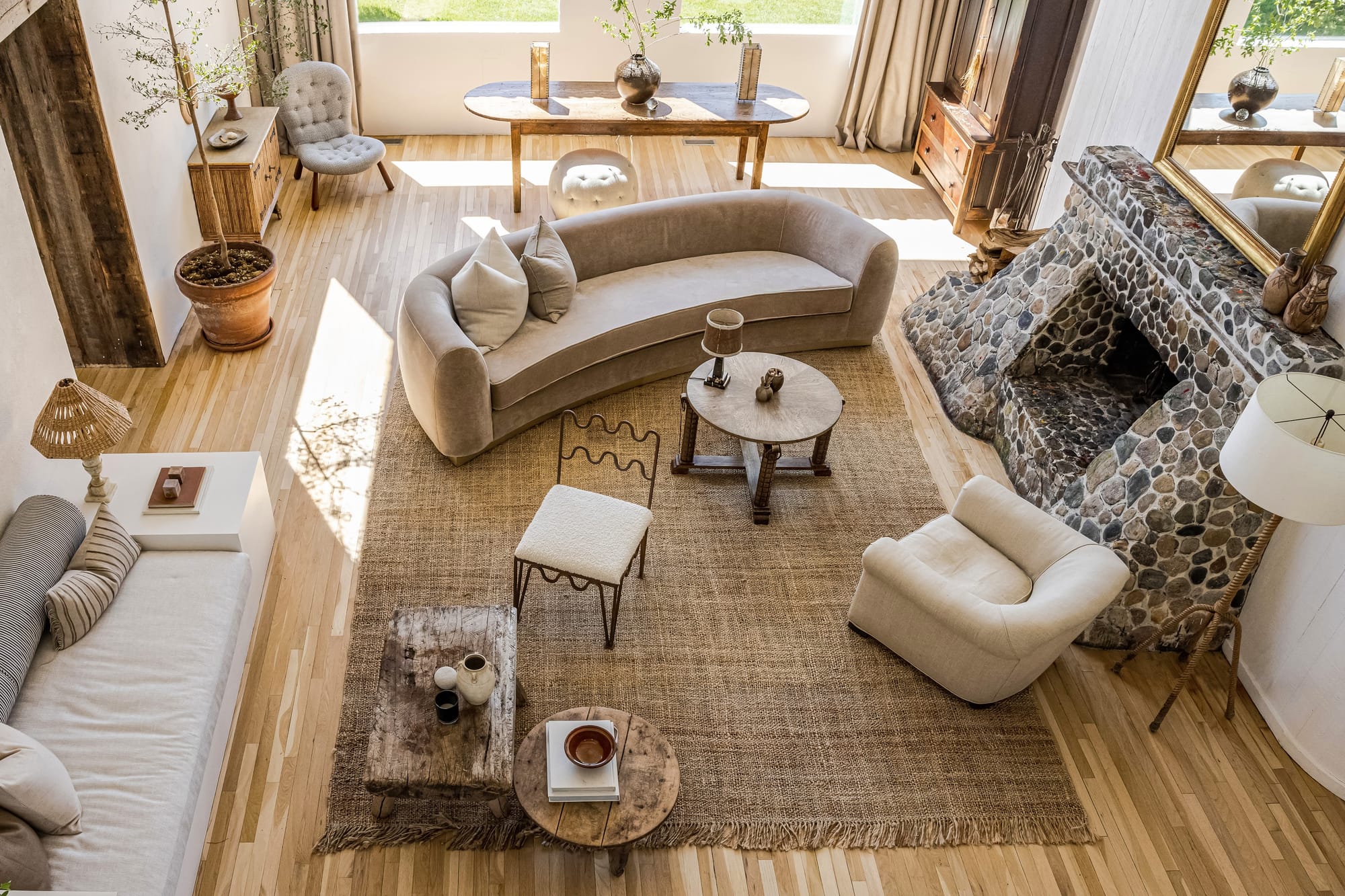 That balance between permanence and play defines his design ethos: timeless materials layered with collected objects and handmade details. “When something’s made by hand—a basket, a textile, a piece of pottery—it earns its place next to the most luxurious thing in the room,” he says. “Craft equals soul.”