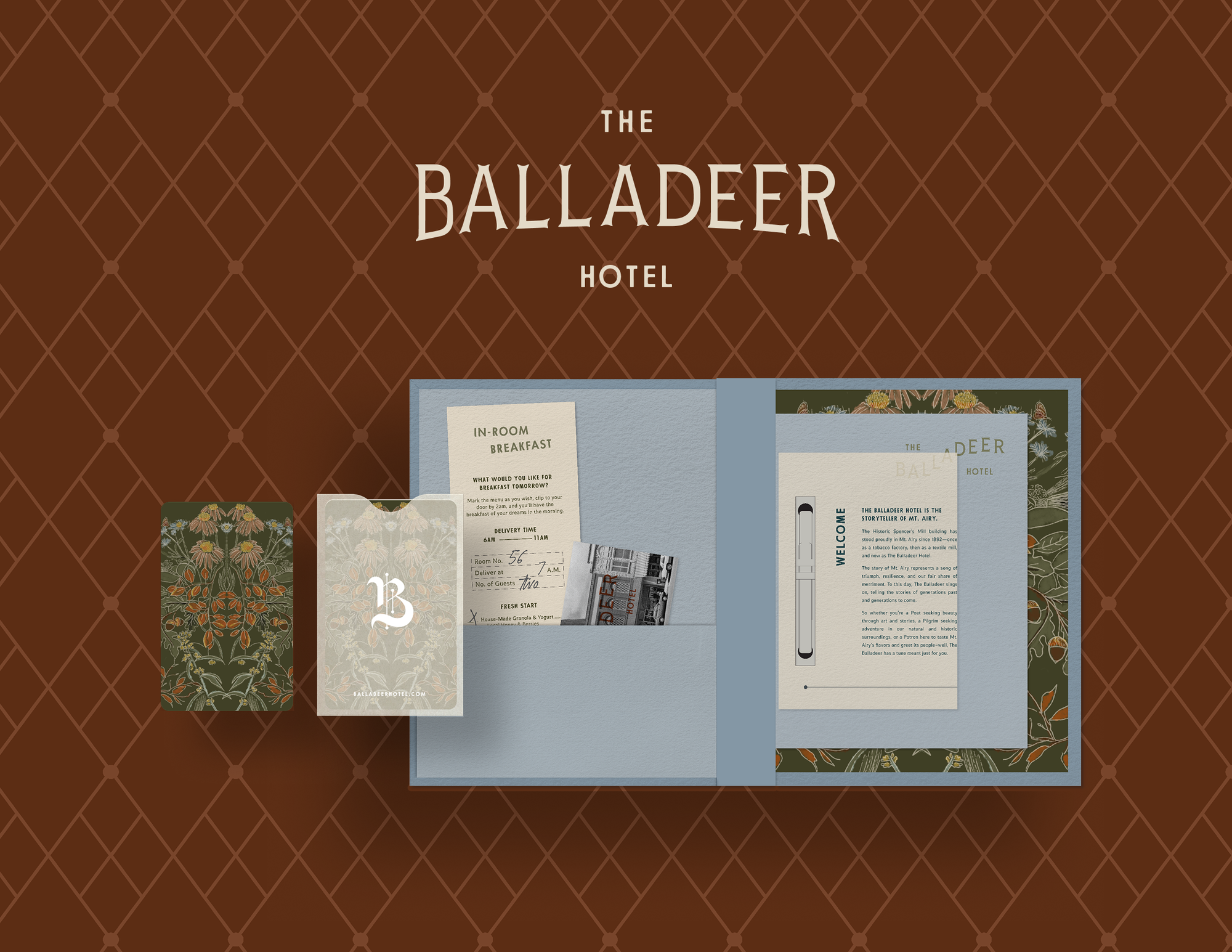 LEFT: Collateral designed for Berkshires Untold in Lenox, MA, RIGHT: Welcome packet designed for The Balladeer Hotel in Mt. Airy, NC