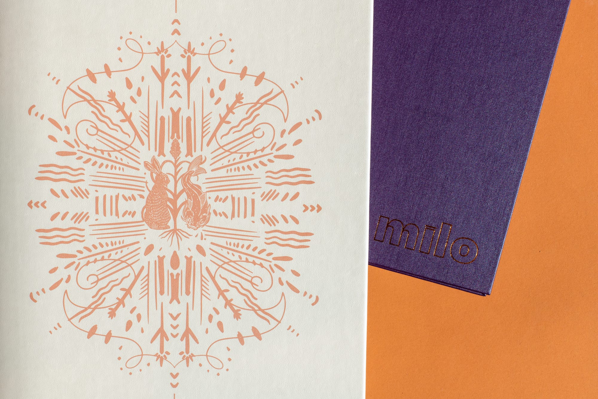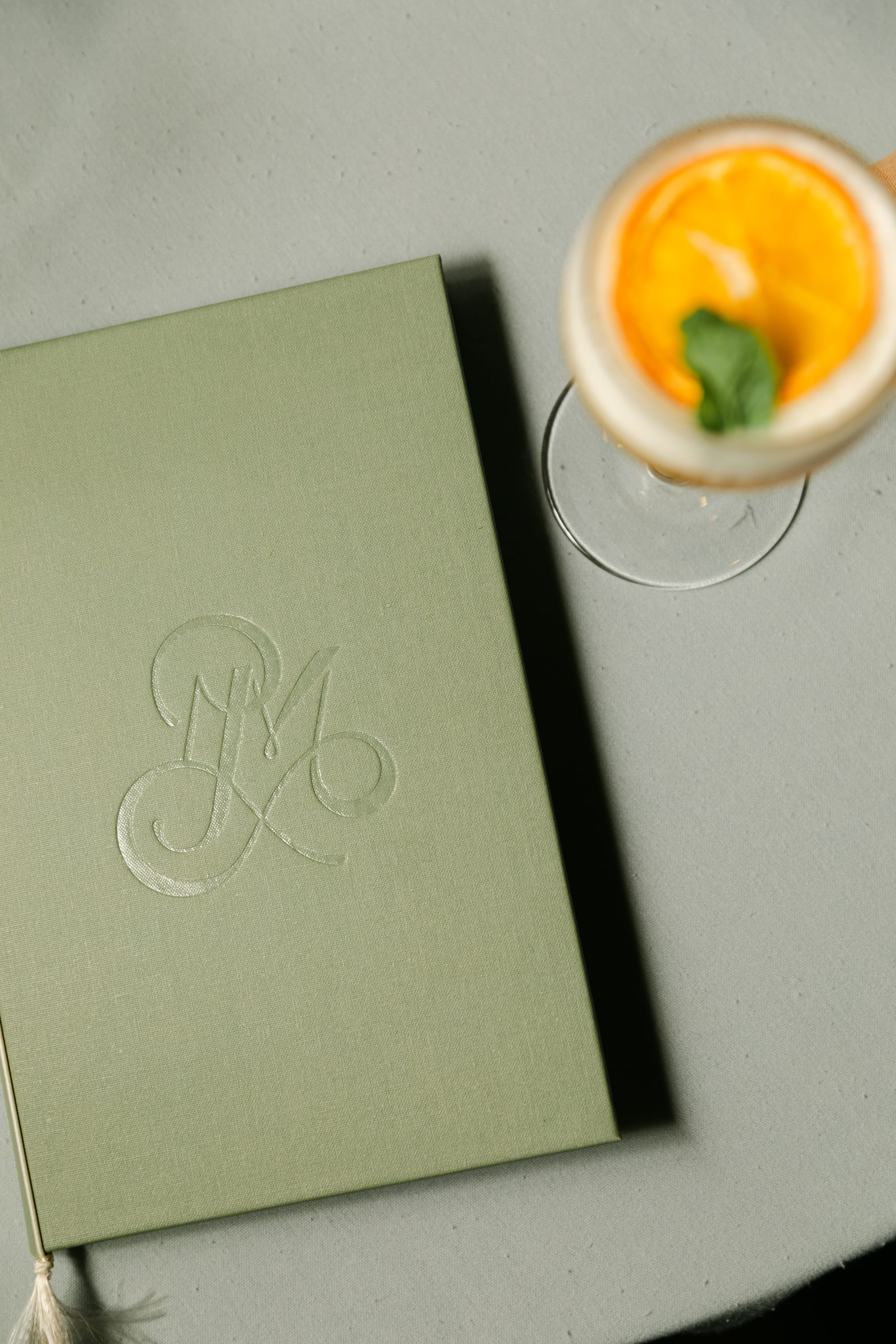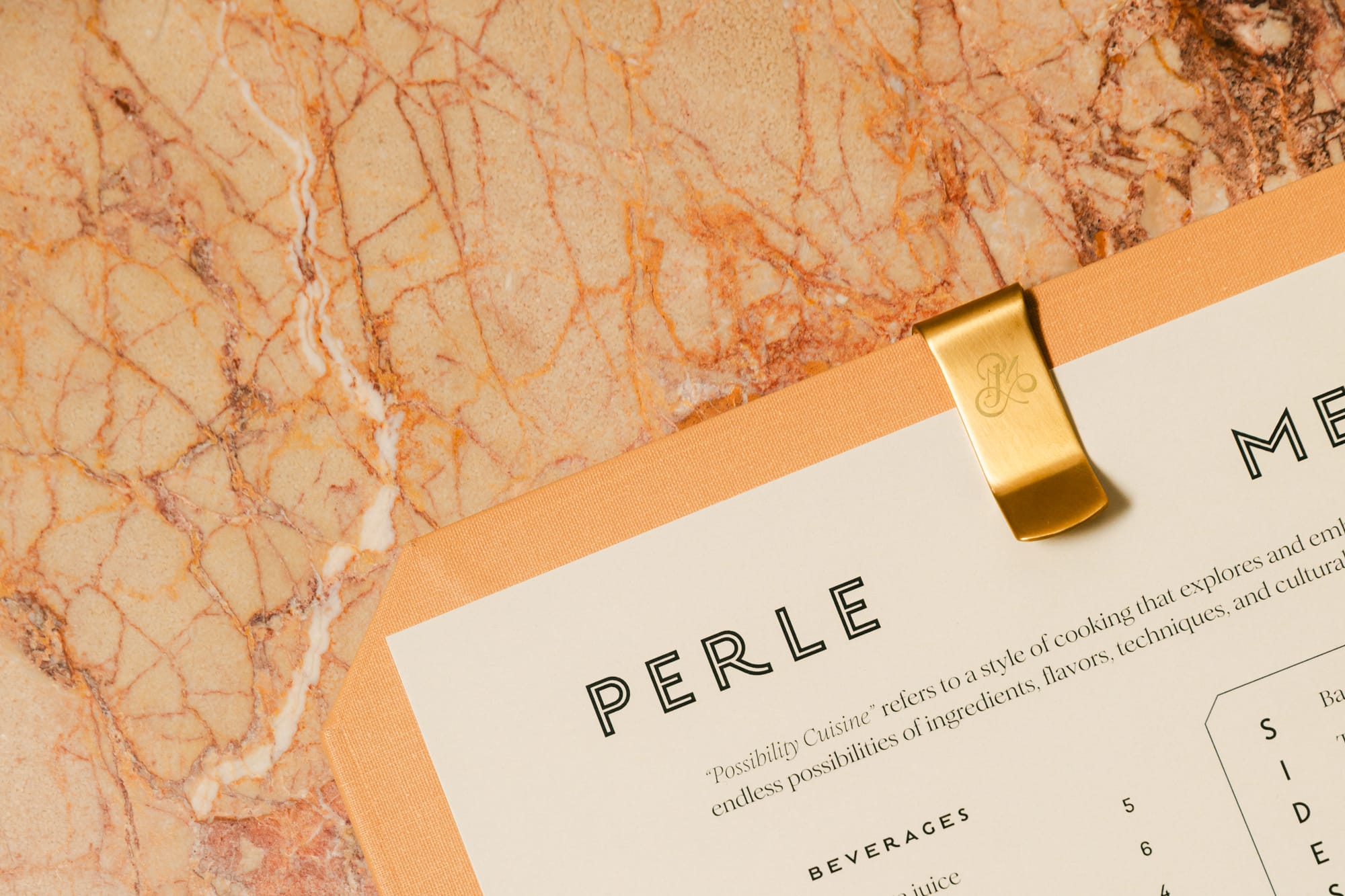 LEFT: Foil embossed monogram designed for Perle Mesta at Skirvin Hotel, Photo by Betsy Dutcher, RIGHT: Illustration designed for Milo’s drink menu at The Ellison in Oklahoma City, OK, Photo by Rachel Maucieri