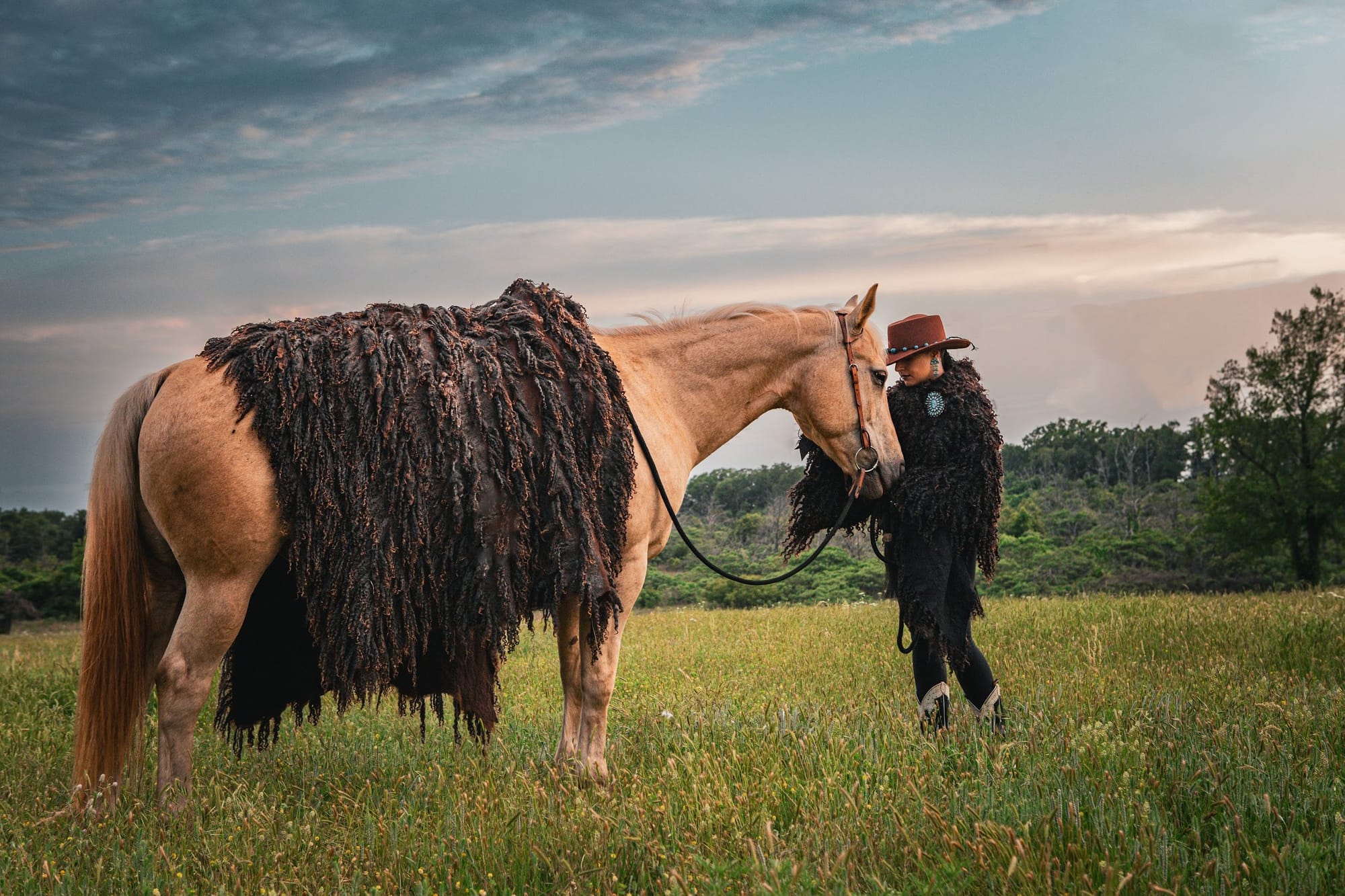 With wool and felt as her primary medium, Thomas-Kelsey has completed almost every imaginable textile category — including headboards, wall tapestries, rugs, bedcovers, hats, ponchos and capes. She’s also not left her roots in bridal couture behind, having designed bridal pieces using her felting process.