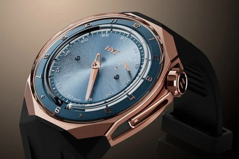 HYT is a horse of another color entirely. “HYT stands for hydro technical,” Naifeh says. “This is a very, very new company. It’s only been in existence since 2012, although the technology for the watch was being developed prior to HYT being formed as a company. They only make about 150 watches a year.” Reader, are you ready for this? HYT is the first watch to tell time with liquid. There is no hour hand. You tell the hour by the advance of the liquid as it moves in the watch, through a little tube.
