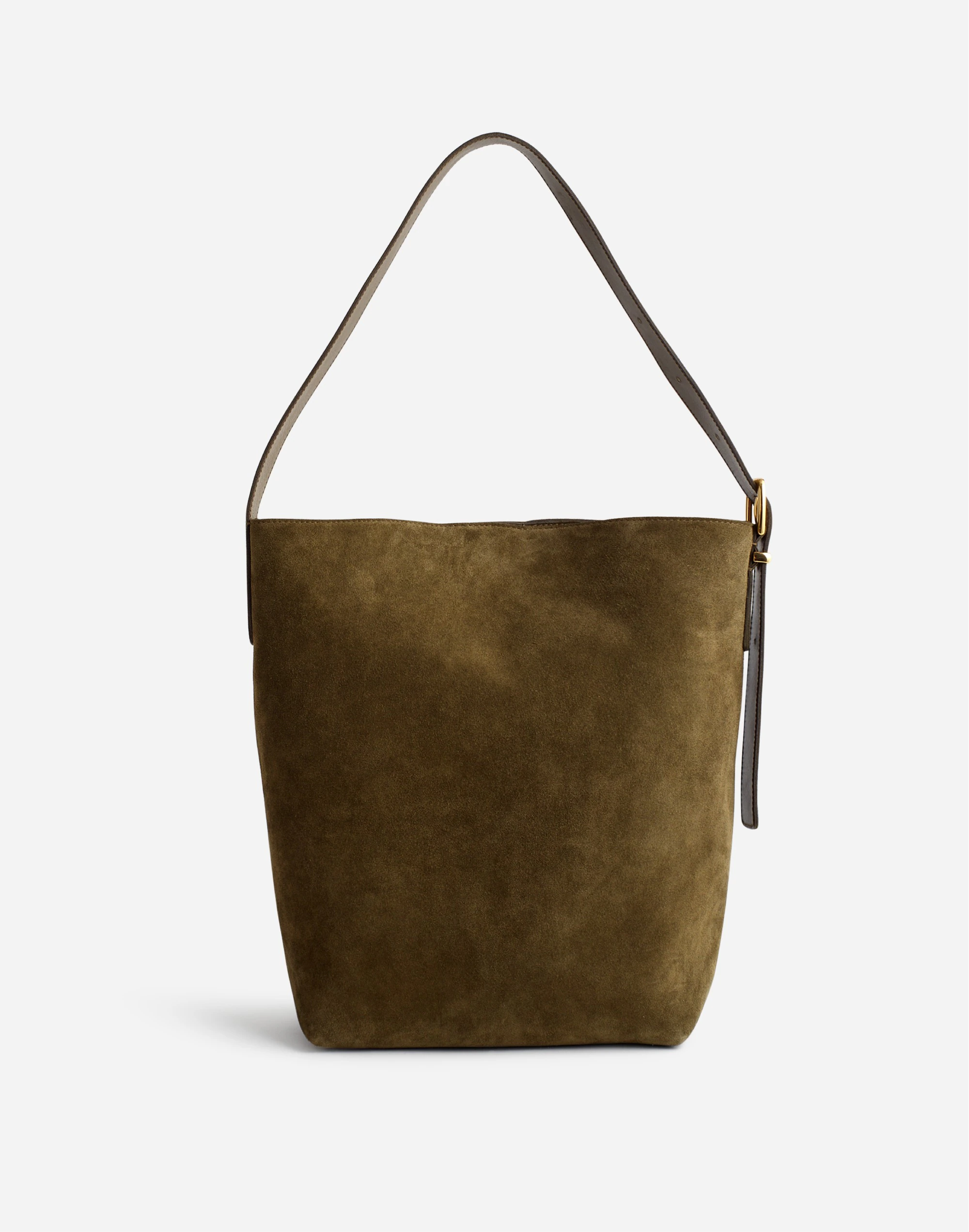 LEFT: Zara Suede Leather Jacket RIGHT: The Essential Bucket Tote by Madewell