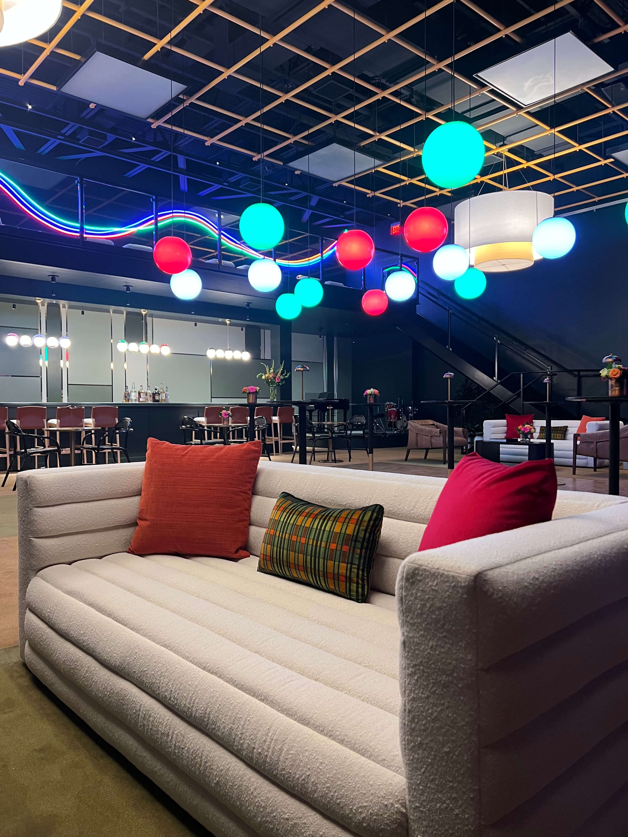 Large, public spaces like the Tulsa Performing Arts Center give Murphy room to expound: Playful, elegant and comfortable.