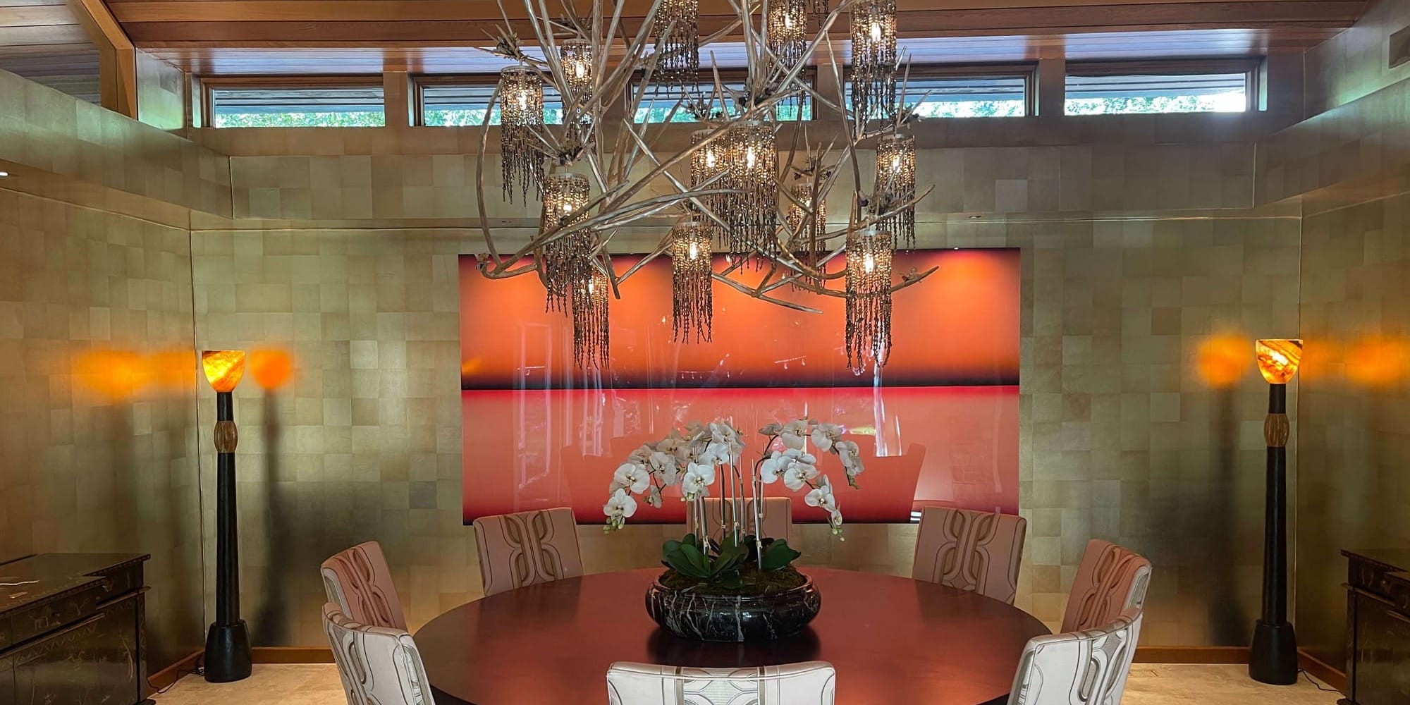 Many of his subsequent projects were — and are — less like designing a space and more like creating a fully immersive experience for clients, one of which came with a sort of rite of passage. “I worked on a 37,000-square-foot house where the private assistant had challenged me, to get the job, to redesign the client’s master bath in a weekend.” He was granted some planning time, but literally had two days to install it while the client was in Vegas. Logistics required that Murphy overnight toilets from Italy. “I rose to the occasion; I did it and got the job, which was amazing.” This client, a friend of Elton John’s, went on to commission an 1,800-piece Chihuly chandelier. “We put Elton John’s white concert grand underneath it in the entryway,” Murphy says. “I got to create a whole kind of very fantasy world for somebody that was very eccentric and very wonderful.”