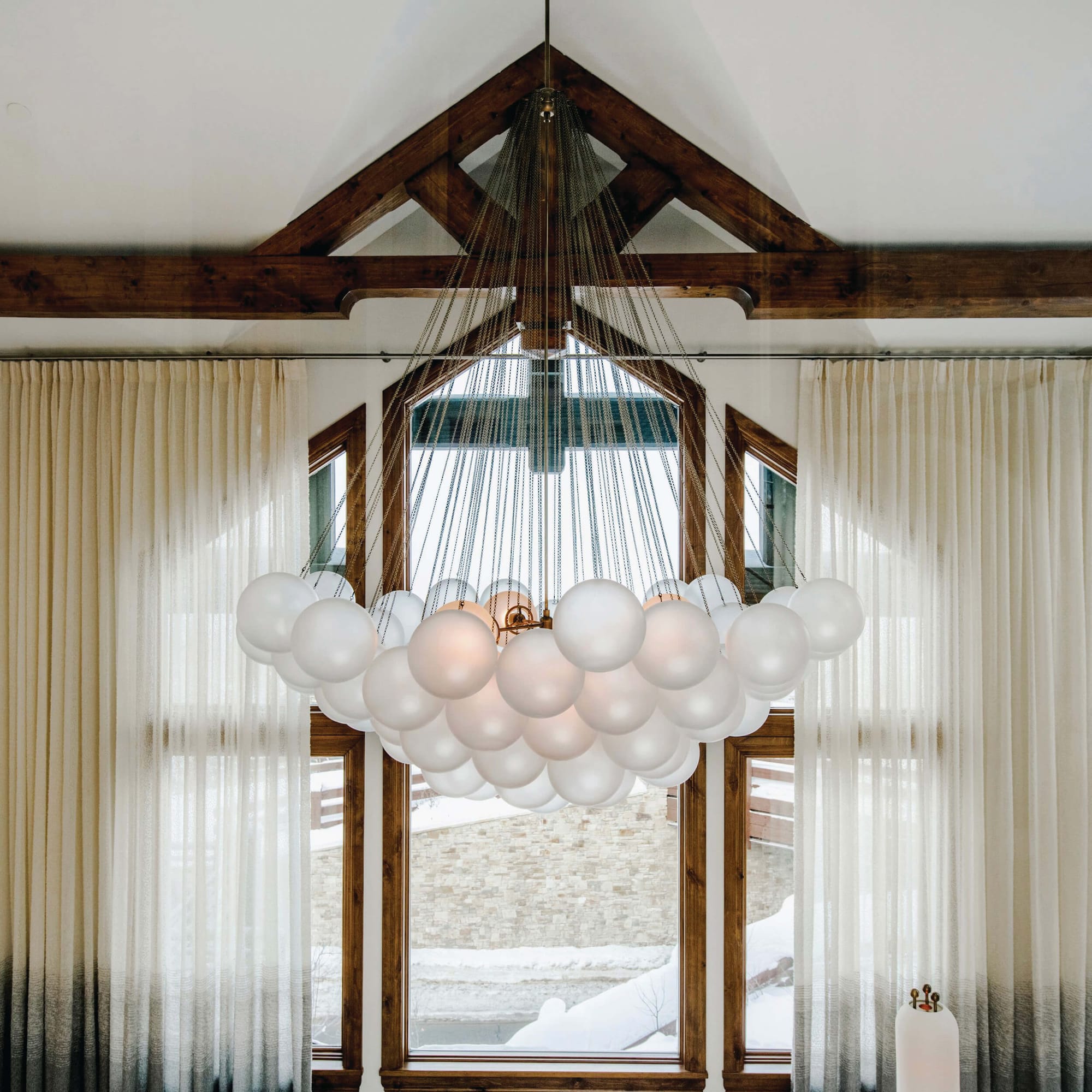 Wooden flooring in the chalet came from Spain, but not without a little drama. “They were not going to be ready to make the boat to be here in time,” Murphy says. The contractor suggested they use carpet, temporarily. To that, Murphy said, “No, just put it on a plane. Just overnight it.” They did. And they overnighted the sofas from Paris.