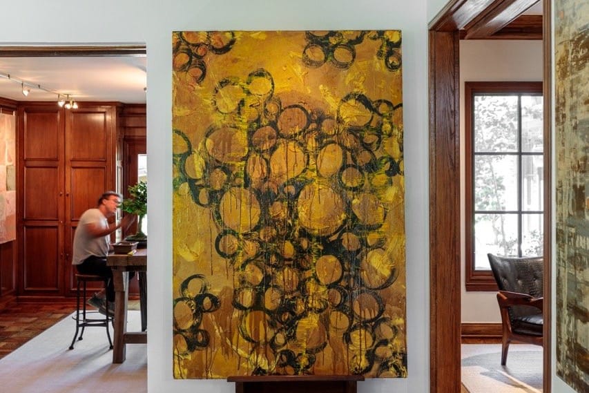 The side of him that knew there was something more beautiful and creative to be found within his business also saw the same for his home. Built in 1937, his charming English Tudor-style home in Oklahoma City’s Crown Heights neighborhood is a fusion of modern and old house charm, telling the story of the hobbies and things he loves — like art, bonsai and Japanese koi fish.