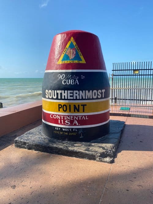 Just one block west of the southern end of Duval Street is the buoy marker for the southernmost point of the United States. This colorful landmark makes for a popular photo opportunity with its painted stripes and inscriptions.